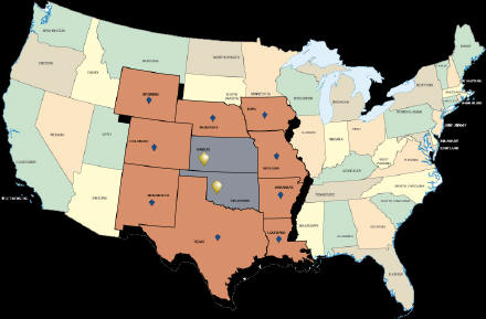 Woodward, Oklahoma, and Liberal, Kansas – right in the heart of one of